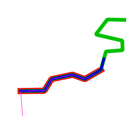 Si l'on part d'une couche linéaire (schématiquement représentée ici, une couleur par année) correspondant à plusieurs années de recensement et dont les parties linéaires communes se superposent parfaitement.
