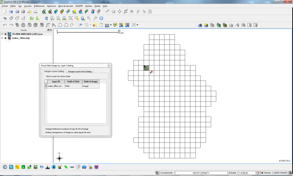 Comment gérer un catalogue d'image sous QGIS, par exemple la bd ortho sur un département? Ceci est possible aisément à l'aide de deux extensions : Image boundary et Show/Hide Image.