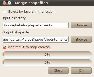 Le plugin dont je vais vous parler cette fois fait exactement l'inverse de ShapefileSplitter, à savoir il fusionne tous les shapefiles d'un dossier en un seul shapefile.