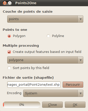Points2One est un module très simple et très pratique qui permet à partir d'une couche de points de générer des polygones ou des polylignes.