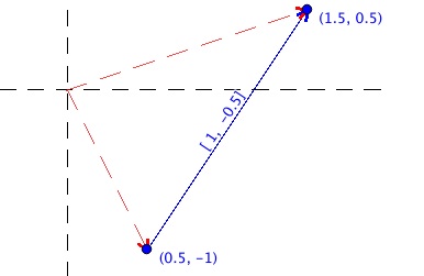 - Vecteur correspondant à la ligne QgsGeometry.fromPolyline([QgsPoint(0.5,-1.0),QgsPoint(1.5,0.5)];