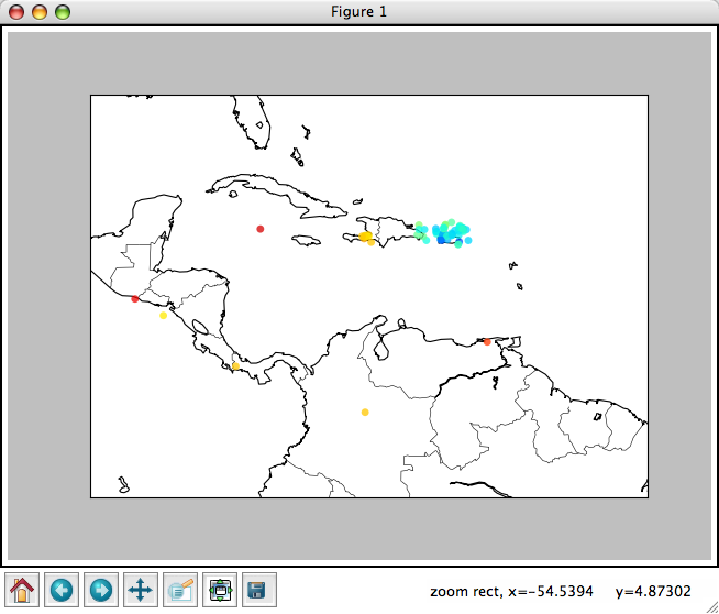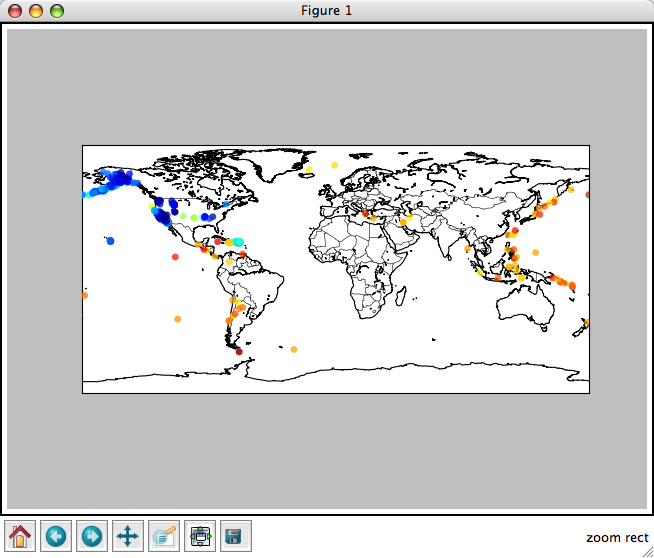 Tous les traitements ont été effectués sur Mac OS X avec Python 2.5.4 à partir du script de Christian S. Perone légèrement modifié et de la bibliothèque pyearthquake
