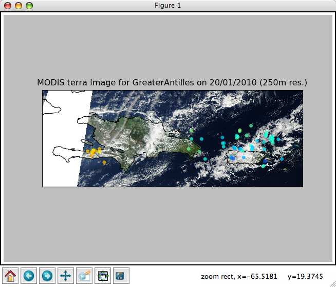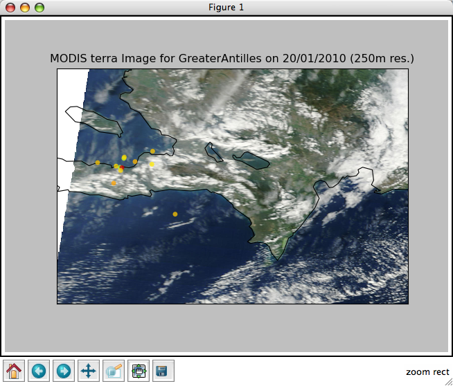 Images satellites Modis + shapefiles de l' USGS ( tremblements de terre)
