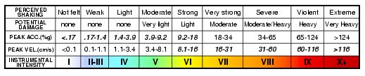 Les couleurs des points sont ici basées sur l'échelle des tremblements de terre de l’USGS qui peut être obtenue par la bibliothèque elle-même.