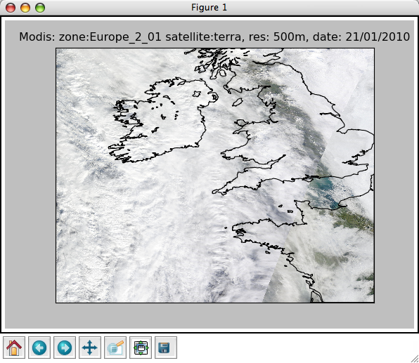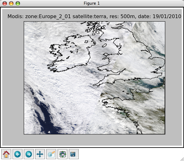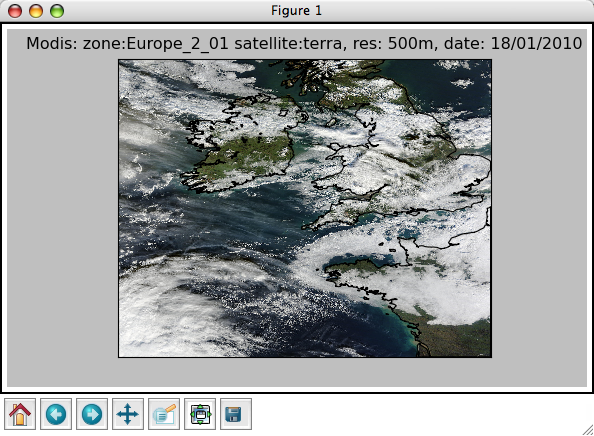 Christian S. Perone présente un script Python permettant de tout faire de manière automatique et transparente, c'est à dire, téléchargement d'une image d'une zone donnée et visualisation avec Python grâce à la librairie Matplotlib et son module cartographique Basemap, qui gère les projections : pyevolve.sourceforge.net/wordpress/ .