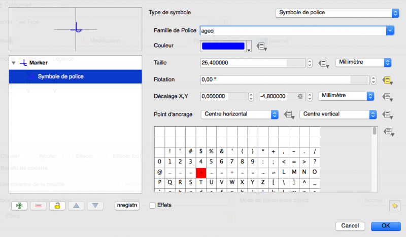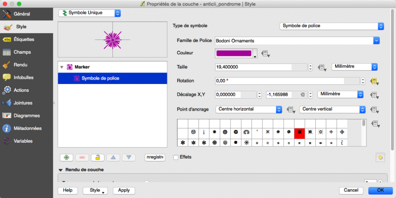 Nicolas Rochard a présenté sur le Portail comment Ajouter et personnaliser des symboles SVG depuis QGIS, mais il est aussi possible d'utiliser des polices de caractères pour obtenir des symboles.