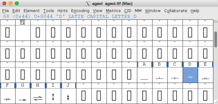 Pour ceux qui veulent apprendre à créer des belles fontes, passez votre chemin, ce n'est pas le but ici. Je ne veux que créer des fontes « techniques » de symboles à utiliser dans QGIS. Je ne m'intéresserai ici qu'à FontForge (je ne connais pas bien BirdFont qui me semble moins intuitif et ne permet pas de visualiser toutes les fontes, voir QGIS: You want symbols? You’ve got it!).