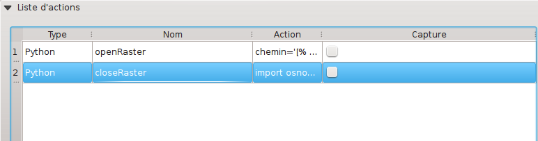 Nous allons utiliser les actions pour gérer l'affichage ou non de nos rasters :