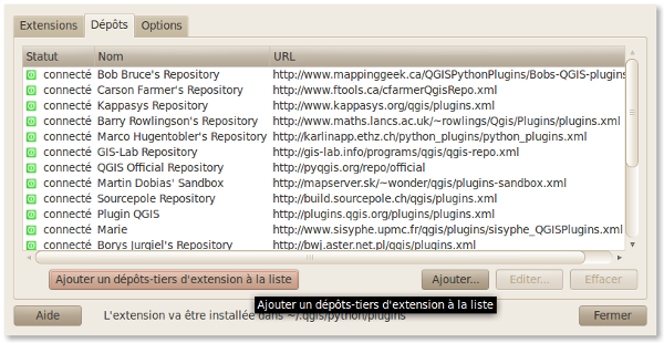 Je considère que l'on part d'une installation correcte de QGIS, j'utilise personnellement la dernière version stable, 1.7.4. (voir ici pour debian)