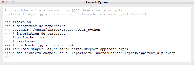 def run_script(iface):ldr = Loader(iface)ldr.load_shapefiles('/Users/Shared/Dropbox/transfert')