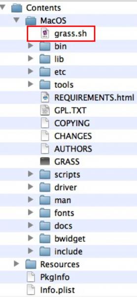 - contenu du paquet GRASS-6.4.app (clic droit de la souris ou Ctrl+click puis « afficher le contenu du paquet »):