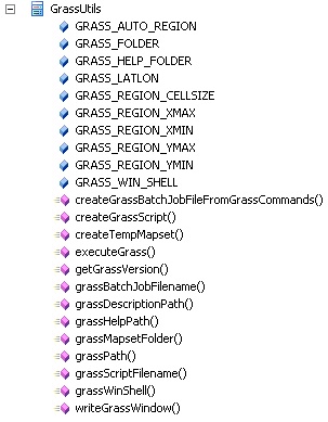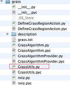 Après l'utilisation de l'interface de l'algorithme, c'est le fichier GrassUtils.py qui est le moteur du traitement avec la classe GrassUtils: