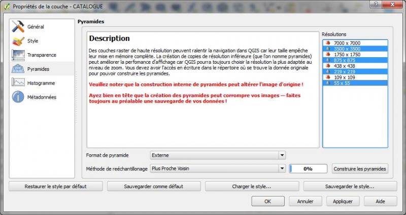 4) Les pyramides pour les raster.