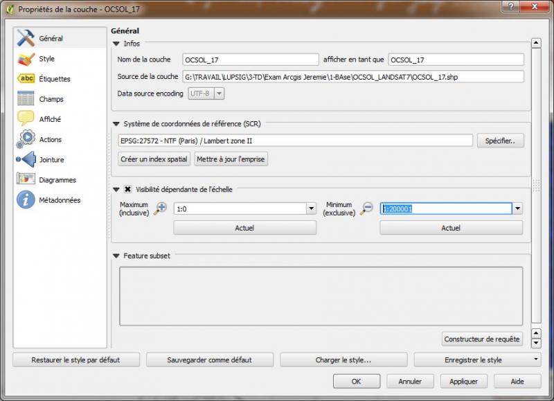 Pour calculer l'index spatial d'une couche dans Qgis, rendez vous dans les propriétés de la couche, onglet Général (cf. l'imprime-écran du point 1).