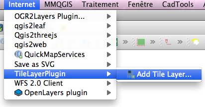 Tout le monde connait le protocole WMS qui permet d'obtenir des cartes à partir de serveurs cartographiques (Menu Couches/ Ajouter une couche/Ajouter une couche WMS) et le plugin OpenLayers qui permet d'obtenir des fonds de carte OpenStreetMap, Google Maps, Bing Maps, MapQuest et autres en utilisant la librairie JavaScript du même nom (Menu Internet/OpenLayers plugin), mais peu d'entre nous utilisent directement les services/protocoles tuilés (pavés cartographiques pour les Canadiens), TMS (Tile Map Service) développé par l' OSGeo (Fondation Geospatiale Open Source), WMTS de l'OGC Nous ne discuterons pas ici des principes, des protocoles ou des différents formats (ZXY, XYZ, ...) en renvoyant le lecteur aux nombreuses explications qu'il est possible de trouver sur Internet (Petite histoire de tuilage de neogeo, FOSS4G 2010: OGC WMTS and OSGeo TMS standards:motivations, history and differences (pdf) ou Stockage de tuiles : comprendre WMTS et TMS de Makina Corpus, par exemple, mais il y en a beaucoup d'autres comme le livre Tile-Based Geospatial Information Systems,Principles and Practices (2010) de Sample, J.T. et Loup, E. chez Springer). Le but ici est d'expliquer comment afficher pratiquement les cartes résultantes dans QGIS sans passer par l'une ou l'autre des solutions proposées.