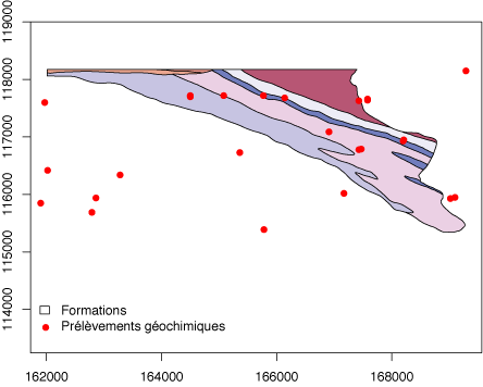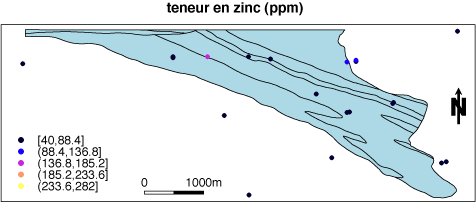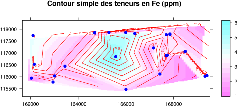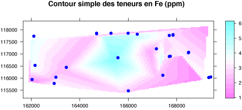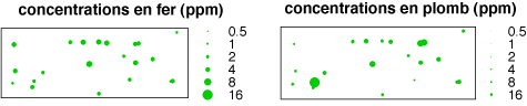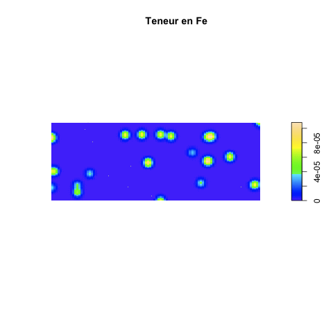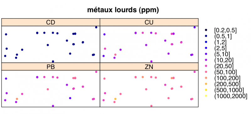 - du plus simple, exemple avec les données géochimiques (package spatstat)