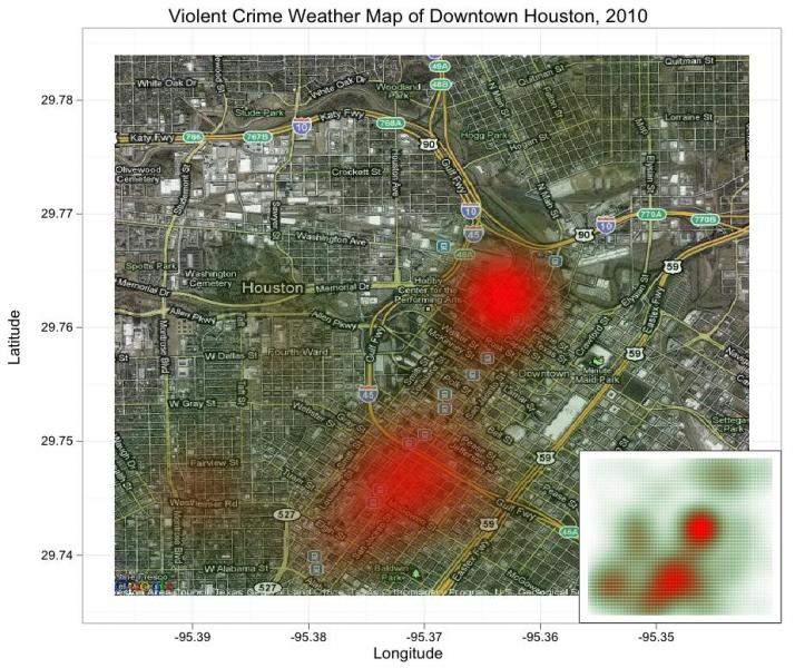 - pour un exemple complet avec RgoogleMaps, voir l'article de David Kahle qui analyse les statistiques du crime à Houston ( github.com/hadley/ggplot2/wiki/Crime-in-Downtown-Houston,-Texas-%3A-Combining-ggplot2-and-Google-Maps)