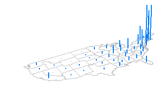 - R permet de représenter quantitativement ces données en 3d, mais elles ne s'y prêtent pas bien, alors j'ai repris celui de la densité de population par état aux États-Unis (paquet lattice)