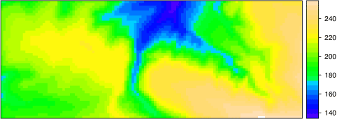 - R sait aussi traiter les données raster et cela a déjà été montré sur le Portail. ( MNT SRTM 3 provenant de GRASS GIS - paquets spgrass6, sp). Les rasters géorérencés peuvent aussi être lus indépendamment par les paquets rgdal et raster.