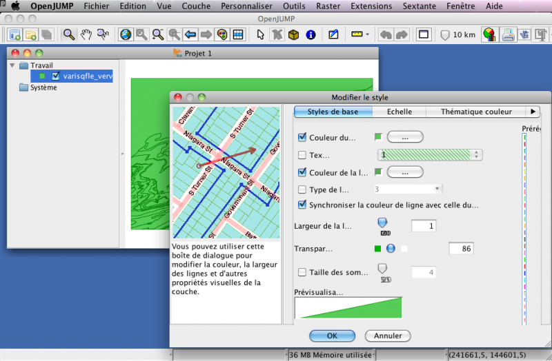 Je vous invite à lire la suite dans « À la découverte d'OpenJump » de GeoTribu ou les tutoriels de J-GEO (geo.michaelm.free.fr/spip.php). C'est pour moi, un logiciel SIG qui évolue très bien, plus léger que GvSIG (pour les Sigs en Java) et qui m'offre des traitements que je ne trouve pas ailleurs. Le problème de la gestion des projections ne me gêne pas outre mesure.