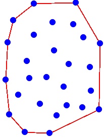 Qu'est-ce qu'une enveloppe convexe d'un ensemble de points ? C'est la surface qui minimise la zone qui contient tous les points, sans que l'angle entre deux arêtes voisines ne dépasse 180°.