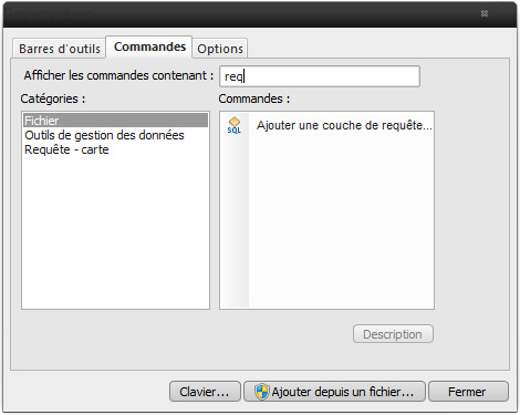 Chercher couche ou requêtes. Le bouton se nomme Ajouter une une couche de requête. Faites le glisser dans votre barre d'outils.