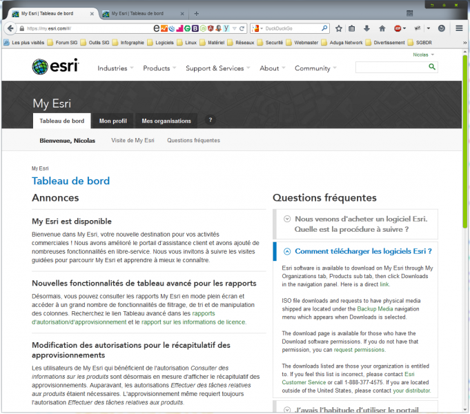 Rendez-vous sur votre espace client et cliquez sur le lien 'link' dans la partie droite Comment télécharger les logiciels ESRI