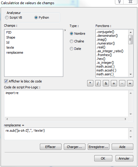 ArcGIS permet aujourd'hui et de plus en plus d'utiliser le langage python, ainsi il est possible d'utiliser toute la puissance de ce langage au travers d'ArcGIS et même via la calculatrice de champs.