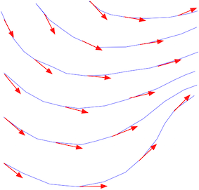 1) Au départ, je dispose d’une grille régulière de points obtenue par traitements géostatistique (effectué avec R) avec des angles de direction sous forme de cosinus directeurs dont je veux obtenir les streamlines (pour simplifier ce sont les lignes de champ ou lignes tangentes à chaque point de la grille).
